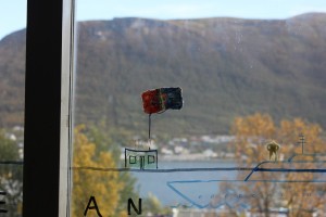 The first, the “Leisure Chair” invites the visitor to take a seat and “just relax” and look out through the window at the landscape, that is, the flagpole, the park surrounding the art hall, the road, the buildings and the piece of the Atlantic Ocean which separates Tromso from the mountains towering around it.